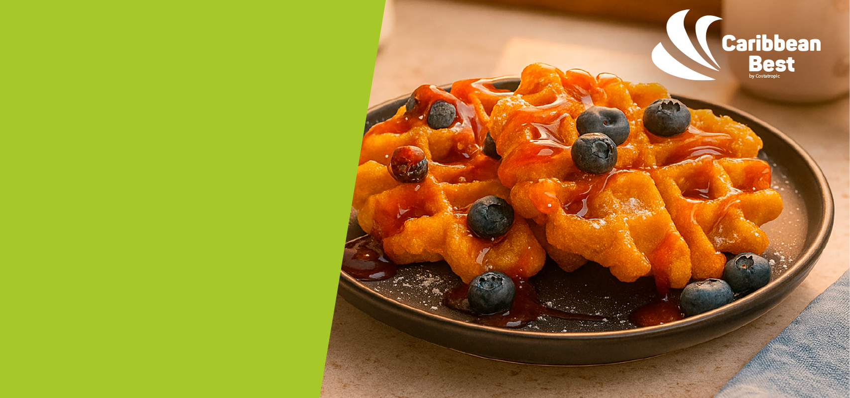 Rodajas de plátano verde precocidas y congeladas, listas para freír y disfrutar con su auténtico sabor caribeño.